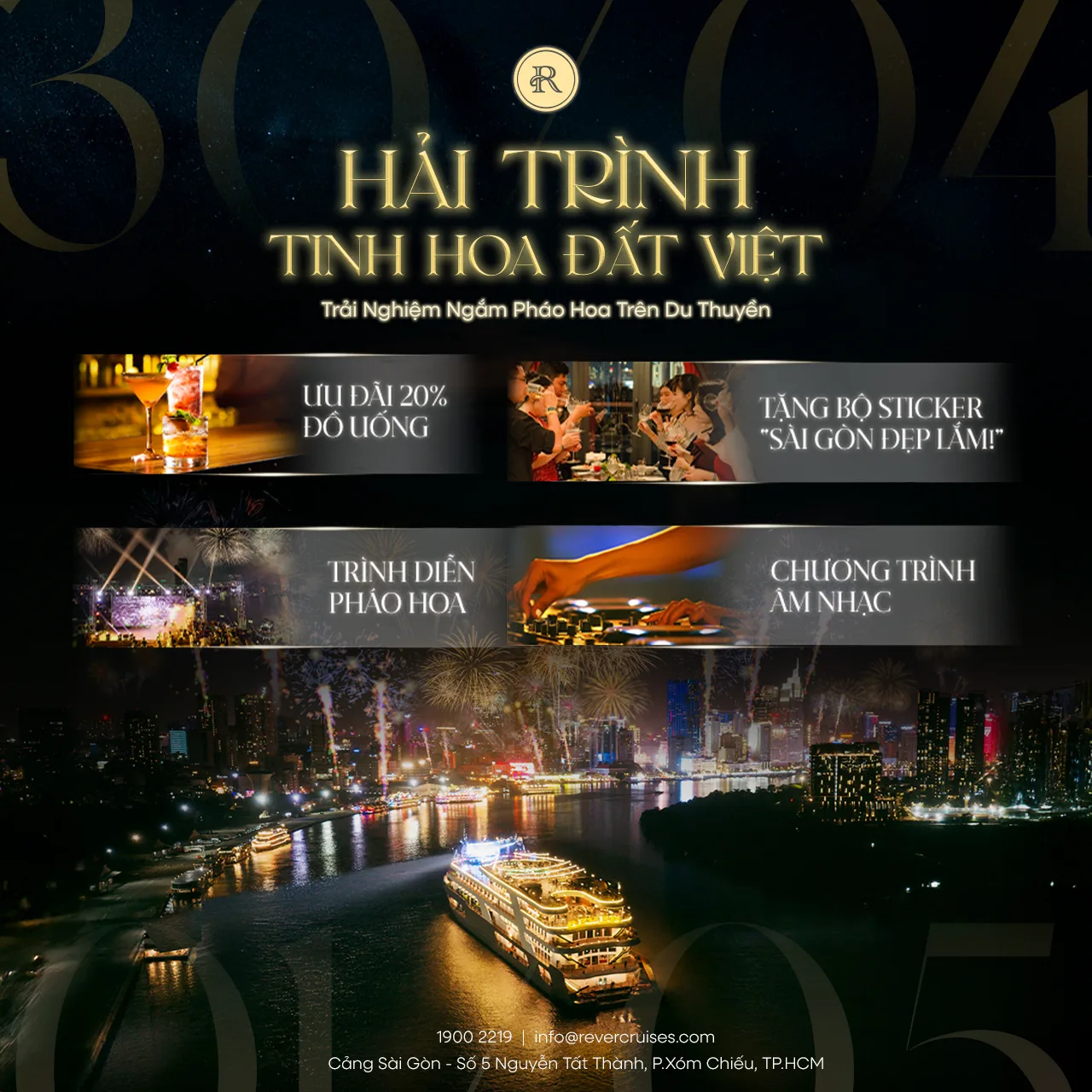 Khởi nguồn từ chuỗi các con tàu thuộc Indochina Sails, mang trong mình hơn ba thập kỷ tinh hoa, phục vụ hơn một triệu du khách kể từ năm 1993. REVER Cruise là nhà hàng du thuyền, nơi di sản và hiện đại giao hoà trong một hành trình vượt thời gian. Lấy sự hiện đại làm biểu tượng và chất liệu văn hoá từ Địa Trung Hải, Đông Dương, Ả Rập làm nguồn mạch cảm hứng. Trải nghiệm tại REVER là lựa chọn hoàn hảo cho những ai muốn đặt bàn trên du thuyền, tận hưởng bữa tối riêng tư hoặc khám phá một dinner cruise tại Sài Gòn theo phong cách mới mẻ.